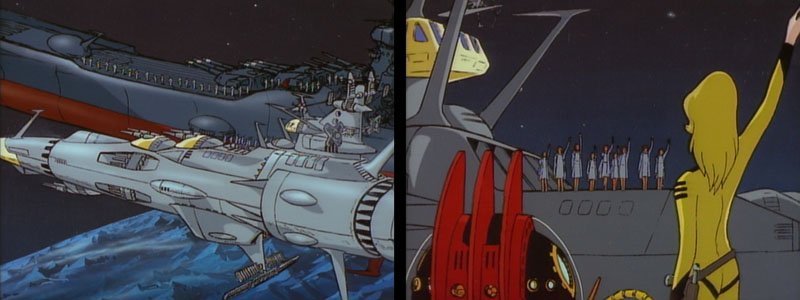 since they were my favorite designs and arguably the most thought out. Each of the subsequent Films in the series had a habit of wiping out Earths standing fleet and each movie got a new ( and more easily destroyed ) EDF fleet which was rushed and skimpier in overall design — at least Bolar Wars establishes either some Series 2 earth fleet ships did survive the Comet Empire attacks or the Earth rebuilt a few Legacy designs while it was in the process of building new EDF drones for Final Yamato — My guess is the ( real world ) reason for this odd choice — which ironically ties series 2 and 3 more closely together design wise — is that the Film art departments may not have shared materials with the existing television production staff for Bolar Wars Yamato 3 or perhaps there was simply more television ready Design sheets and cells lying around from Series 2 and ready to be repurposed. I would be curious to know the official reason for this odd little bit of EDF throwback trivia.