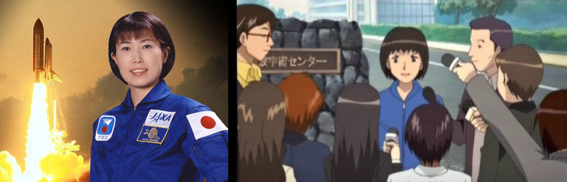 Yamato‘s real-life presence took another big step forward toward the end of 2008 when JAXA astronaut Naoko Yamazaki was named to the command crew of STS-131 Atlantis, scheduled for launch in 2011. The connection was a simple one: she explained that in her childhood she was a great fan of Leiji Matsumoto stories such as Galaxy Express 999 and Space Battleship Yamato, which inspired her to one day travel in space. In her, at least, the original goal of the series to instill hopes and dreams of the future in the youth of Japan was fully realized. Ms. Yamazaki further established her anime bona-fides when she provided her own voice in the 2009 TV series Rocket Girls, shown above right.