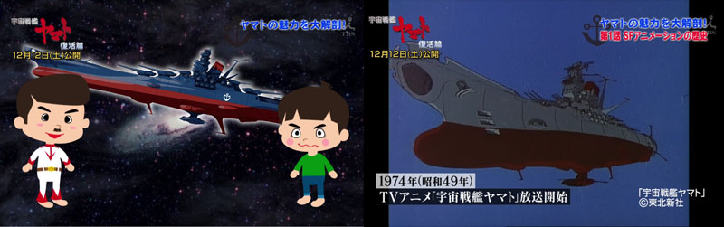 Three TV specials began airing on Japanese television this week and continued appearing throughout the month. They all took the opportunity to re-introduce the saga to new viewers prior to the premiere of Resurrection. The first special, titled Tracks of Yamato and Us, premiered on the Family Theatre network and kicked off a month of rebroadcasts for the entire Yamato saga. Marathon reruns of all three TV series and all five movies were shown multiple times. The second special, Space Battleship Yamato: All the Charm, premiered on TBS and migrated to other networks through December 24. The third special was titled The Age With Yamato and appeared exclusively on Japan’s History Channel.