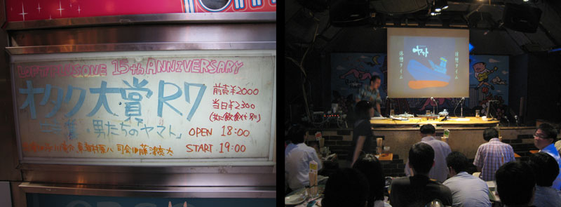 “Otaku Award R7” is the name of a special-interest group that meets periodically in Tokyo to do what Otaku do best: talk about their interests. They hold small-scale talk-show events for similarly-minded fans on a variety of topics several times a year. At this gathering, a handful of big-name fans came together under the banner of “Men of Yamato” at ‘Loft One’ in Shinjuku. Friend-of-this-website Gwyn Campbell was there and submitted this firsthand account: