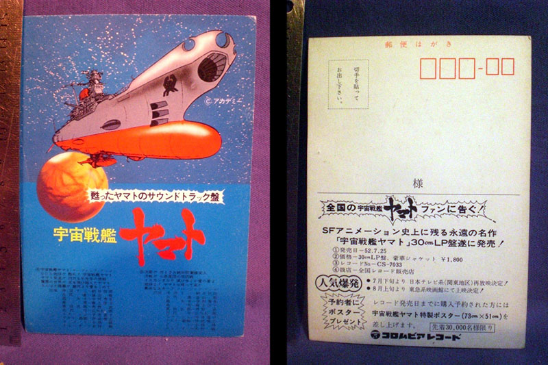 Another item in the kit was a promotional postcard and a list of media organizations to send it to. And finally, a phone list for radio stations to call up and request airplay of the Yamato theme. All of this worked like a charm; as soon as the fans mobilized, advance ticket sales exploded.