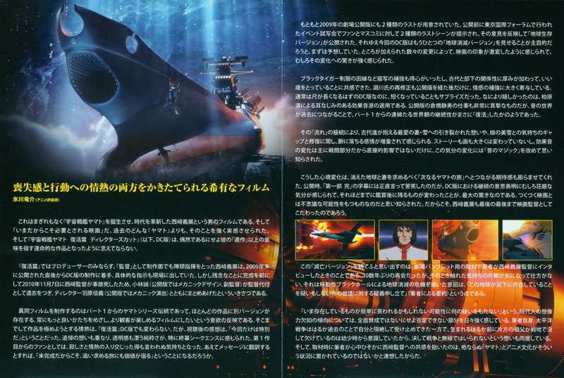 Without question, Space Battleship Yamato by Producer Yoshinobu Nishizaki gave birth to an era of innovation, and was “a movie demanded by the times.” In the past, Yamato inspired strong feelings. The Space Battleship Yamato Resurrection Director’s Cut (hereafter referred to as DC) accidentally became a “posthumous work,” and it seems to have become a fateful one which retained that meaning.