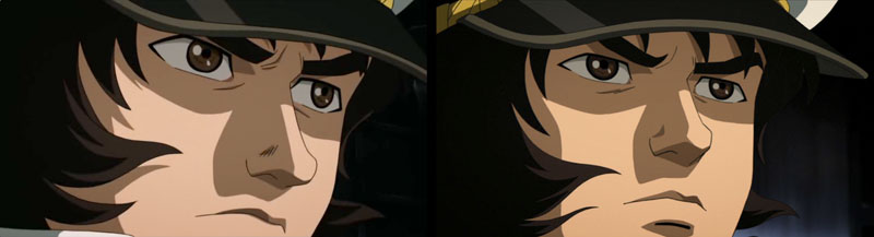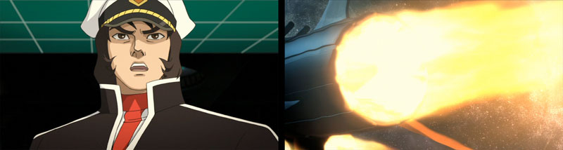Yamato returns home and guides the last emigration fleet safely away. Before moving to follow, Kodai takes one last look at their doomed planet and offers a soliloquy on what it has meant to the human race. The last shot of this speech is a closeup that, for some reason, looks slightly different in the original (above left) than in the DC (above right) That’s fitting, because we’re now about to be plunged into the biggest change of the film: the ending.