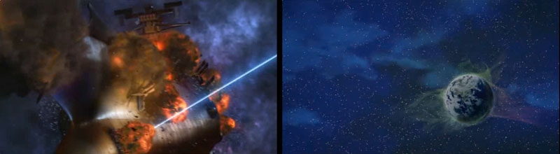 Helpless to intervene, a speck in the vast cosmos, Yamato stands vigil as Earth is literally swept up. The black hole’s energy dissipates and the planet is simply gone.