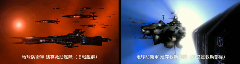 Wave-motion test battleship Musashi was set up in an early stage. There was a plan to use it as a test for Yamato‘s restoration and as the flagship for the first emigration fleet. For other EDF vessels, battleships of familiar design were prepared for Yamato fans.
