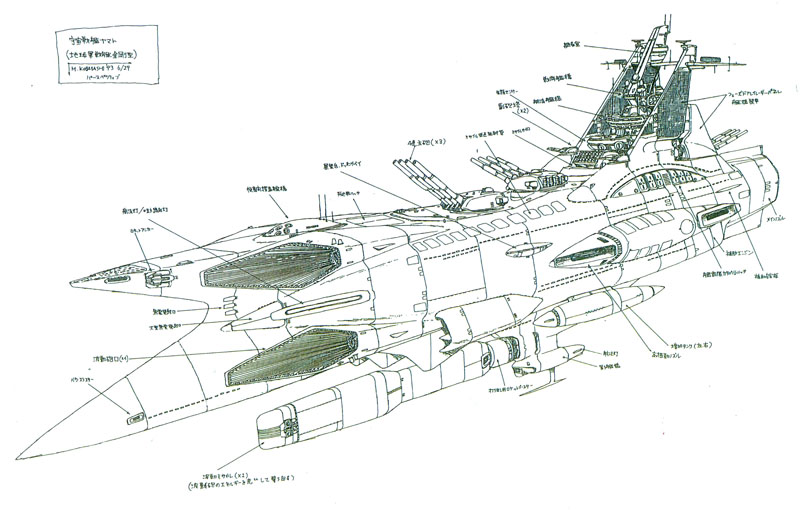 Designer/Director Makoto Kobayashi, as big a Yamato fan as they come, had the same idea. He began to develop it all the way back in 1993 when Yamato Resurrection entered its first phase of production. He also created a backstory for it, which was finally revealed in a special booklet that was included in the Yamato Resurrection Complete Box. That backstory is presented here along with some other ship designs that didn’t make the cut.