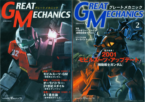 Curiosity Book Volume 73 (above left) came out in October 2001. It was devoted to anime robots and was titled Great Mechanics. The name derived from GM, a line of Mobile Suits from the Gundam saga. It was well-received, so volume 76 was done as a followup titled Great Mechanics 2 (above center). This met with success as well, so Great Mechanics became a subset of the Curiosity Book series. By the time they got around to Great Mechanics 20 in 2006, it had essentially taken over and settled into a quarterly schedule.