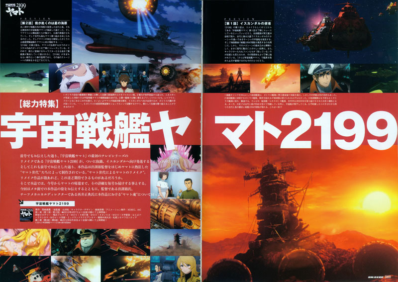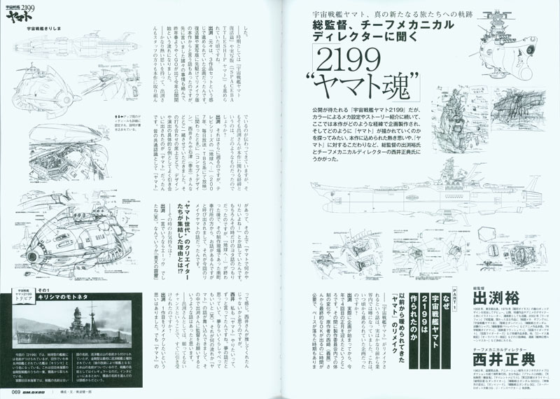 Great Mechanics was founded on the world of anime robots, but true to its name, DX expanded the definition of mecha and was among the first publications to run substantial coverage of Yamato Resurrection in 2009. Now they’re back on the Yamato beat in a big way. There was a short article about Yamato 2199 in issue 19 (covered here), but issue 20 (at left) ran a whopping 16-page feature with exclusive artwork and a heavy-duty interview with two very important members of the production team.