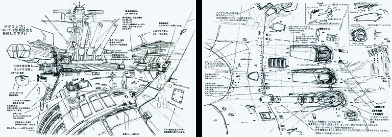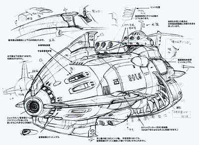 In addition, I wanted to do a similar thing with the Gamilas warships that Mr. Izubuchi and Mr. Ishizu took charge of, considering their impression on the screen. Later you’ll look back at the design sheets and understand what it is. That’s fine. But when you look at the screen it’s better if your immediate impression is, “that’s Mr. Tamamori’s design” and “that’s the Gamilas warship of Mr. Izubuchi.” So that’s what I aim for.