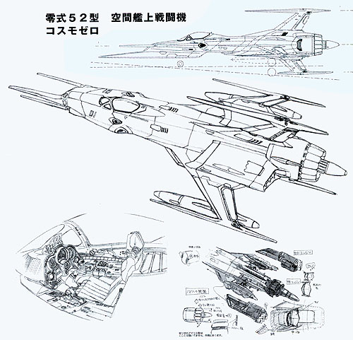 The image source of the Cosmo Zero is the former Japanese navy’s carrier-based fighter, well known as the Zero Fighter. The original Battleship Yamato carried Zeroes, but they were used only for reconnaissance and as spotter planes. Incidentally, the name was taken from the last digit of Imperial Year 2600, (1940 by the Western calendar) when the plane first entered service. All planes produced that particular year bear a number with 00 as the last two digits. The number 52 also comes from a type of Zero fighter (the Cosmo Zero is referred to as a Type-52). The paint scheme almost matches the anime version except that the nose of the Cosmo Zero is red while the original Zero’s propeller spinner was brown. However, the original Type-52 was dark green. Additionally, a yellow band was used for friend-or-foe identification.