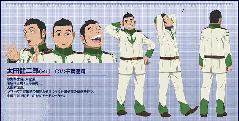 Officer in Yamato‘s navigation division. Chief of weather. His rank is Ensign (or Third-grade Space Lieutenant). Born in Osaka.