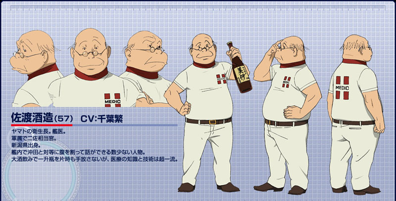 One of the few who can speak frankly to Captain Okita. Although he is a heavy drinker and is never parted from a bottle, his medical and technical knowledge are first-class.