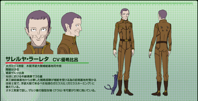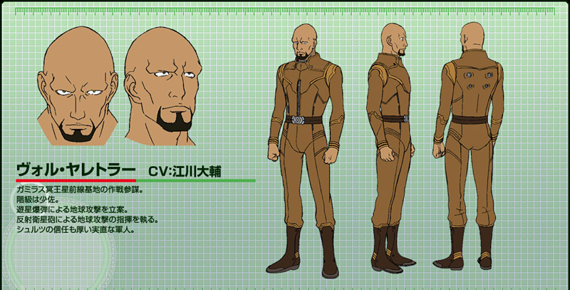 Also from the planet Zalts. A 2nd-class Gamilas officer who was an adjutant of Shulz before being stationed on Pluto. Like Shulz, he was born on Zalts and his skin color is different from a pure-blood Gamilas.