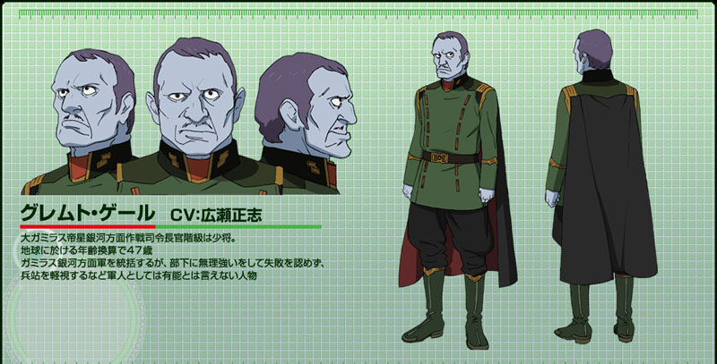 He is the equivalent of 47 years old on Earth. He oversees the Gamilas Army’s operations toward the Milky Way, and does not accept failure from his subordinates. It is said that he is inept as a military officer.