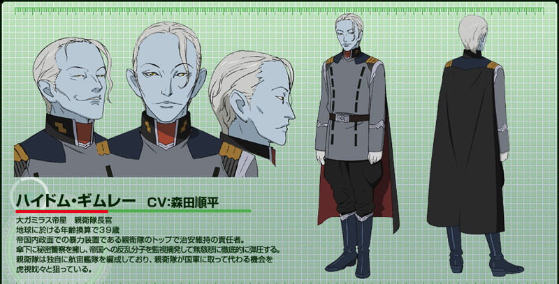 Placed in control of the secret police. A senior general whose name is synonymous with fear in Gamilas society, and a man of few words like a ghost. Supreme commander of Dessler’s guard fleet. A new fleet is reorganized after Dessler’s escape from the home planet, and he pursues Yamato with Dessler.