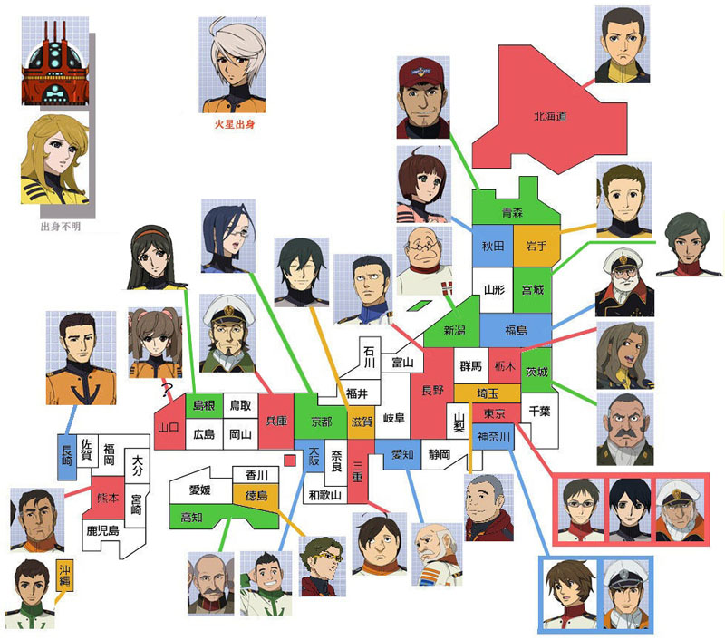 Since each character description on the Earth side includes the prefecture-of-origin, one fan in Japan created this chart to visualize it. It was originally posted on this blog, titled “Dreamlog.”
