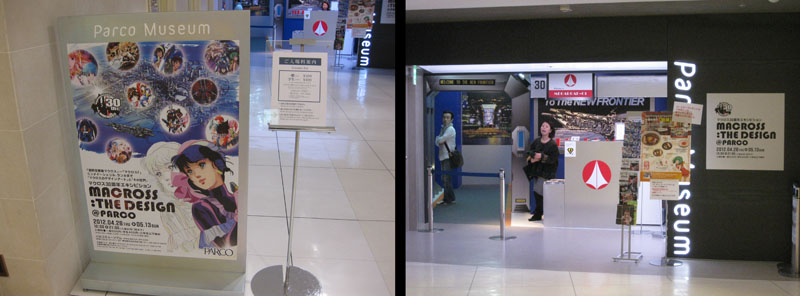 This was mainly a logistical day rather than a wild tour of wonderland, but there was time enough to catch the other Macross anniversary exhibit, this one devoted entirely to the art of the anime, at Parco department store in Shibuya. Like GENGA, it was another anti-camera zone (the nice lady behind the counter is mouthing those very words to me in the photo below right) so all I can tell you is that no finer art exhibit has ever been conceived by man, and you’ll just have to take my word for it.
