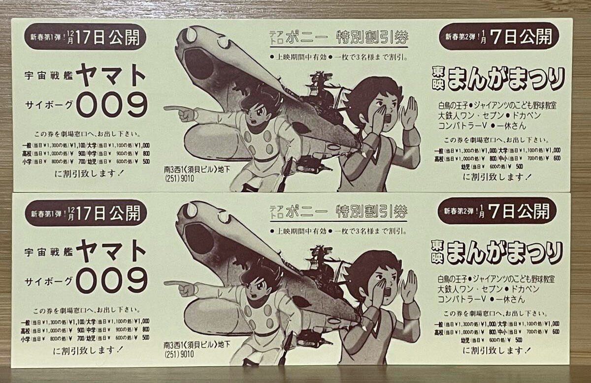 The success of the Yamato movie was certainly not limited to major cities. This discount coupon for a theater in the city of Tsuyama (located in the southern Okayama Prefecture) gave moviegoers a 200yen discount for two weeks of screenings that lasted until December 4.
