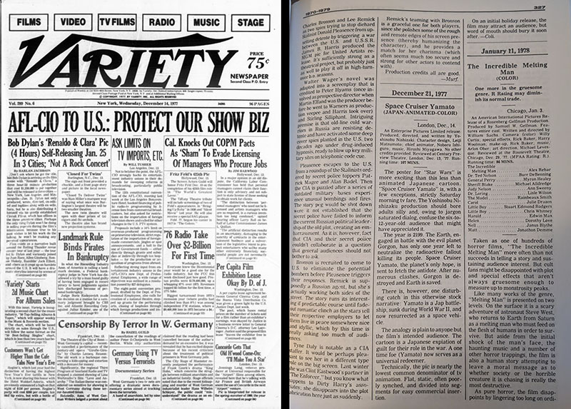Thanks to the efforts of writer/researcher Samantha Ferreira, we have a date for the earliest known review of the English-dubbed Yamato movie, filed at the London office of Variety magazine. And it is most assuredly not an endorsement: