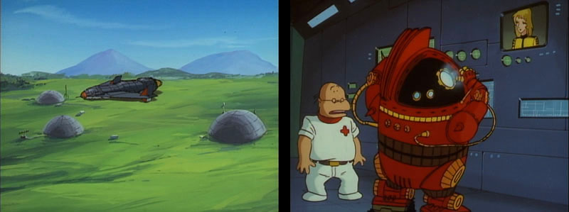 Back at the base camp, Sandor’s [Sanada’s] tests continue to indicate that Phantom is identical to Earth. Remembering IQ-9’s [Analyzer’s] vehement warnings about the planet, Sandor suggests contacting the robot. A call is made to Dr. Sane’s [Dr. Sado’s] quarters, where the robot is sleeping off last episode’s tantrum. IQ initially refuses to wake up, and it’s only when Dr. Sane relays an order from the captain that he moves. The robot’s surliness only lasts until Nova [Yuki] appears onscreen and sweetly asks for his help. He is unable to resist. After all the skirt-flipping Nova (or Yuki, really) has endured, it’s nice to see her wield some power over the annoying robot.