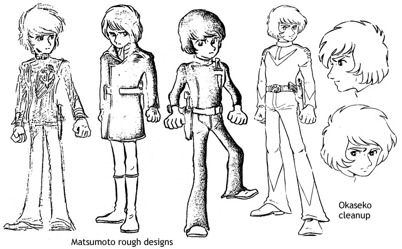 The rough design of Susumu Kodai, drawn by Matsumoto, looks three to five years younger than the final form that we know. Nobuhiro Okasako’s design modification (cleanup) transformed the image into that of a robust young man. However, the somewhat unreliable and lonely look of Matsumoto’s design remains as a hidden tone, and it continues to dominate Kodai.