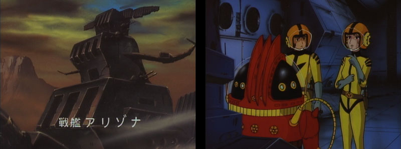 In Yamato III‘s original 52 episode outline, the Arizona was to play an important role. There were entire episodes planned that would focus on the Arizona, relegating the Yamato crew to little more than guest stars in their own show. The climax of “the sinking of the space battleship Arizona” storyline was planned to rival Captain Harlock’s grounding of the Death Shadow from the movie My Youth in Arcadia.