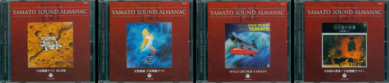 The kickoff to the new series was a group of four discs from the early years. The naming convention made it instantly clear how future discs would be organized. One by one, the first four discs were: 1974-I Space Battleship Yamato BGM Collection, 1977-I Symphonic Suite Yamato, 1977-II Space Cruiser Yamato, and 1978-I The World of Hiroshi Miyagawa. The potential of the series was revealed right off the bat since the latter two albums had never been released on CD before.