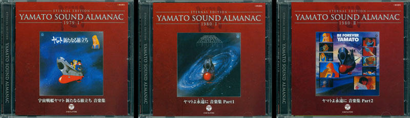 Columbia Records has been Yamato‘s music publisher from the beginning, but they won the hearts of Yamato fandom forever when they released the long-awaited Eternal Edition series in 2000 and 2001, bringing a large volume of previously-unavailable tracks to CD for the first time. This re-release consisted of volumes 1-10, The Best II (a followup song collection) and the Premium box (symphonic albums). Volume 0, which contained tracks linked to Leiji Matsumoto’s Great Yamato manga was deleted from the set for legal reasons.