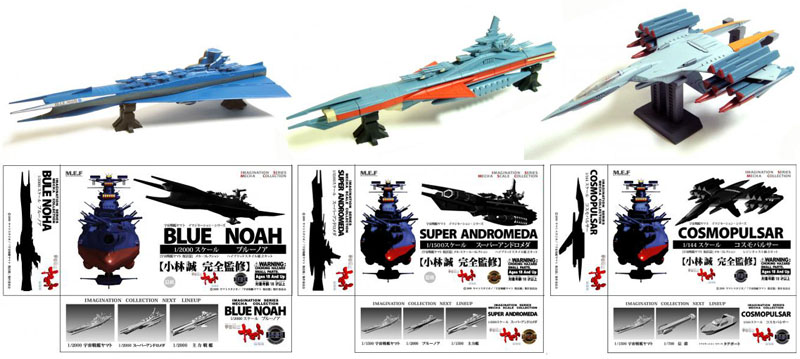 All four were reissued two years later with these new additions: a 1/2000 Blue Noah, a 1/1500 Super Andromeda, and a 1/144 Cosmo Pulsar. Between both MEF and another garage kit maker called Ndopara Shop, most of the new mecha from Resurrection is now available in garage kit form. The holdouts are the new Cosmo Zero, the EDF shuttle, the Earth emigration barge, and ships of the Amare space navy. And, of course, none have been released as standard plastic models. Yet.