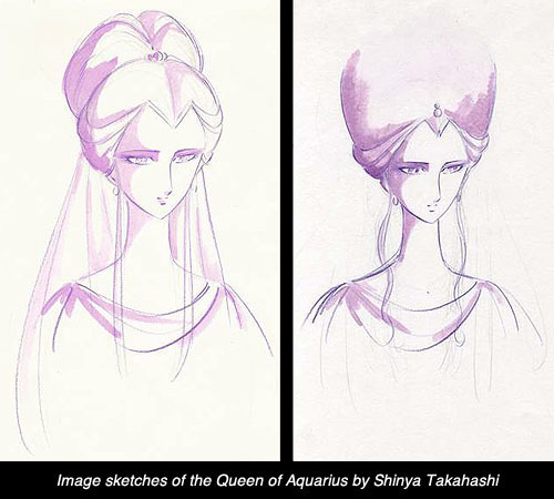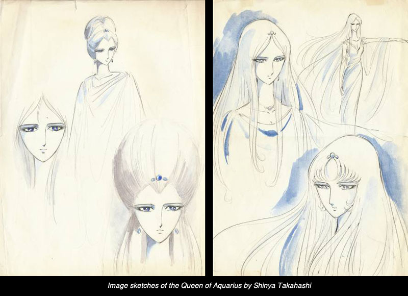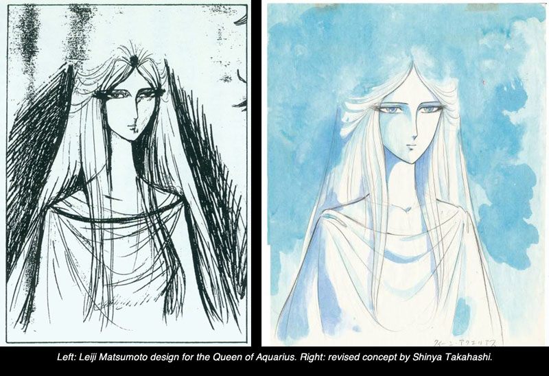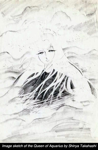I thought Starsha and Sasha could lend a hand since they continue to have eternal life, but Eiichi-san said a new woman would be good. (Laughs) So that settles it, the queen of the water planet is not God. The planet of water is a natural phenomenon. However, it isn’t simply a painted image, but a place where people live, like on a floating continent-type of place. Or should it be a group of planets centering around the main body of Aquarius? I’m just not certain.
