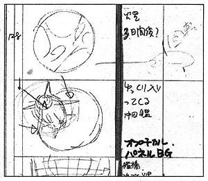 Above right: The closing shot of Episode 3 lasted 22 seconds, which was rare in TV anime. The explosion recedes with ripple glass processing, and Yamato shows great power by coming forward very slowly. The power of skip photography and optical processing are shown to the maximum. In his storyboard, Noboru Ishiguro specified optical instructions for the composition of the camera work.