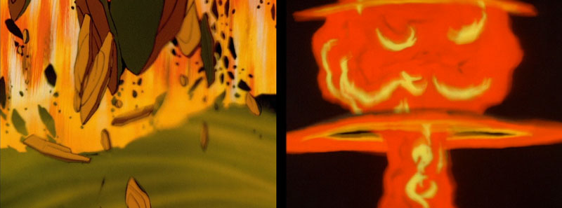 An unusual special effect was added during the processing, in which some parts of the frame go out of focus if you look closely. The huge mushroom cloud that subsequently forms has a flicker in the art, and the entire picture is distorted to lend an exquisite sense of reality.