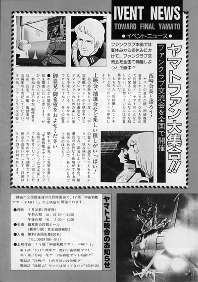 Next came a short blurb that undoubtedly perked up everyone’s interest. It had been floated in a previous issue that a big-scale event was in the works to bring Yamato fans together before the last hurrah. In issue 27, it was finally announced for real: