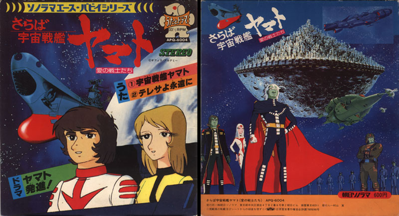 Though Sonorama’s association with the saga would last all the way to the end, this was to be its last Yamato music release, a flexi-disc in the “Sonorama Ace Puppy” series. Like their previous Space Battleship Yamato Sonosheet (1974), one side contained two songs (the Yamato Theme and Teresa Forever) and the other contained a drama track titled Yamato Hasshin!