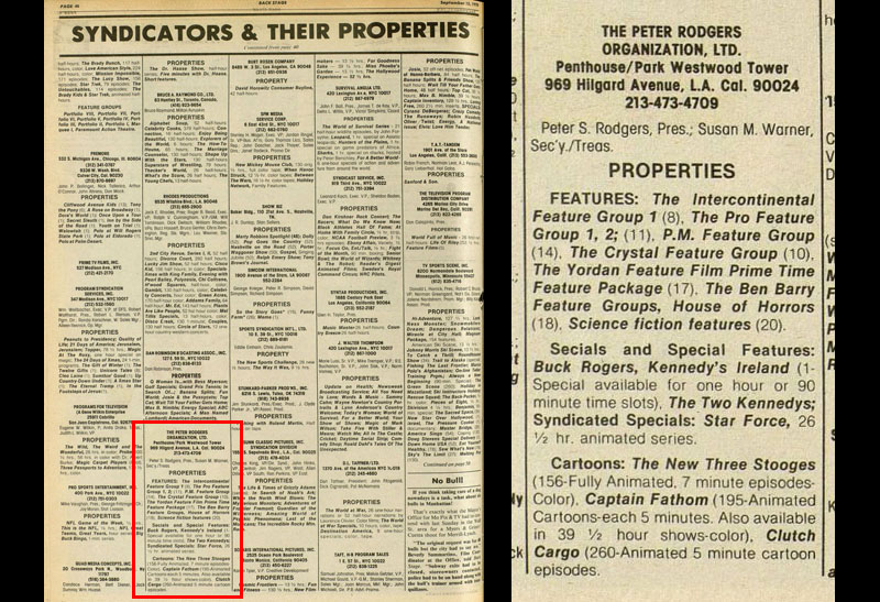 This probably indicates that Claster acquired the show from Peter Rodgers, beginning the process that would bring Star Blazers to our TV screens almost exactly a year later (September 17, 1979).