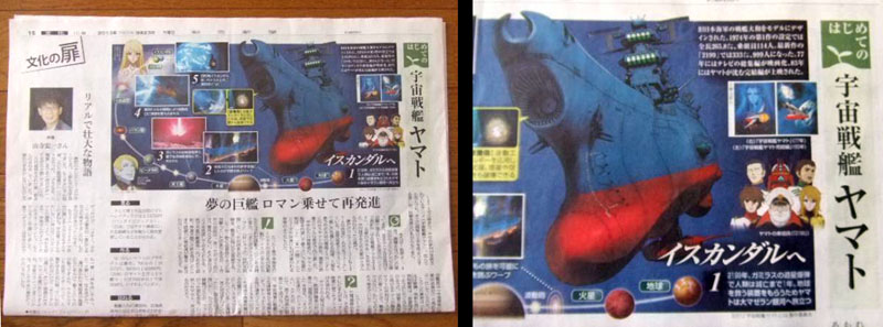 Today’s edition of Asahi Shimbun carried a big article looking back at 2199 and a sidebar interview with voice actor Koichi Yamadera. A copy couldn’t be obtained in time for translation in this report, but will follow next time.