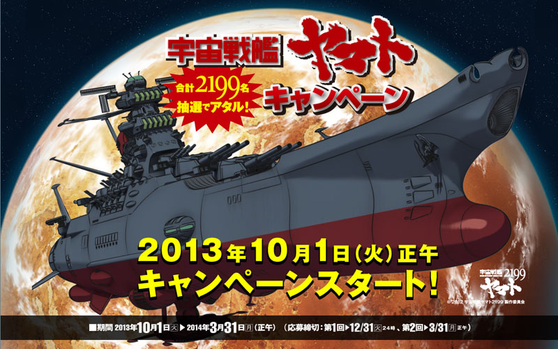 Sapporo is a drinks manufacturer in Japan, and on September 24 they announced a tie-in campaign to start on October 1. From that date through March 31 of 2014, customers who purchased one of 16 different canned drinks would qualify for a free downloadable Wave-Motion Gun sound clip for their smart phone, and also become eligible to earn prizes with purchase points.