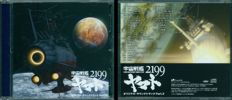 The Yamato 2199 music catalog was finally completed with this release, which arrived under somewhat of a cloud; on the very day it came out, music publisher Lantis issued a press release apologizing for typos in the track lists found on the back cover and inner booklet. Fans who couldn’t live with them were invited to mail in their copies (just the paper) for free replacements. But that did nothing to detract from the music itself, which flawlessly brought the ship home and left nothing behind in the vault – as far as we know.