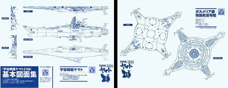All that material focuses on the first 6 episodes and is reprinted from issues of Dengeki Hobby (as seen in previous 2199 reports), but an unexpected bonus at the end was a true delight: blueprints of all the ships featured in the book, formatted in the exact style of the Be Forever Yamato blueprint set from 1980.