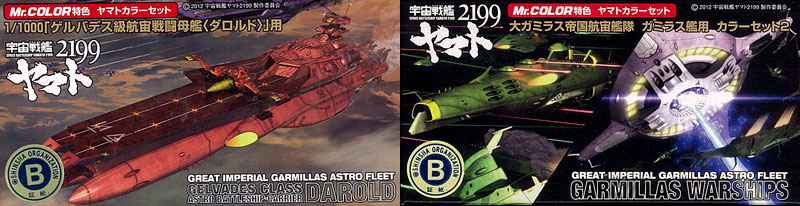 Gunze Sangyo continued its custom line of “Mr. Color” paint for Yamato model kits with a set for the Garmillas battle carrier. A Garmillas warship set (above right) had previously been released in July.