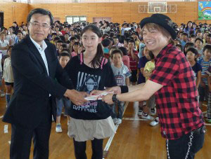 Singer Hironobu Kageyama (pictured here) visited an elementary school in Fukushima on June 14 to hand over the inventory list in a special ceremony.
