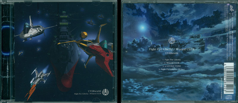 Japan’s Excite website (similar in scope to Yahoo) published an interview with two band members on the day of release, vocalist Takuya Infinity (of course…) and drummer Shintaro. Mr. Infinity said that the lyrics for Fight for Liberty did not come easily, and he was striving for a worldview that would not disappoint Yamato fans. (Naturally, this will be tough for foreign fans to evaluate until those lyrics get translated.) His first thought was to try something more traditional, but since Uverworld was chosen for this job by the anime staff, he decided to stay “in character.”