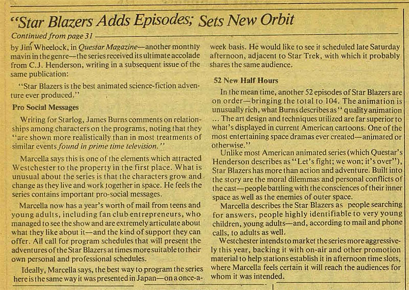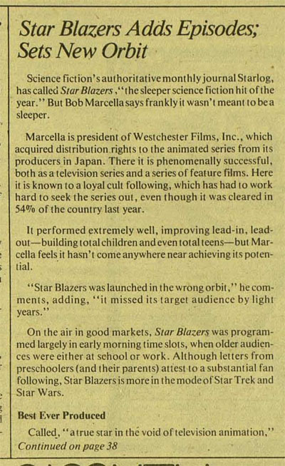 No matter how many times you drifted through the oasis of that single 1980 article in Starlog #35 or heard tell of Yamato‘s massive impact in Japan, you had only the show itself and your imagination to fall back on. Unless you followed Hollywood trade publications.