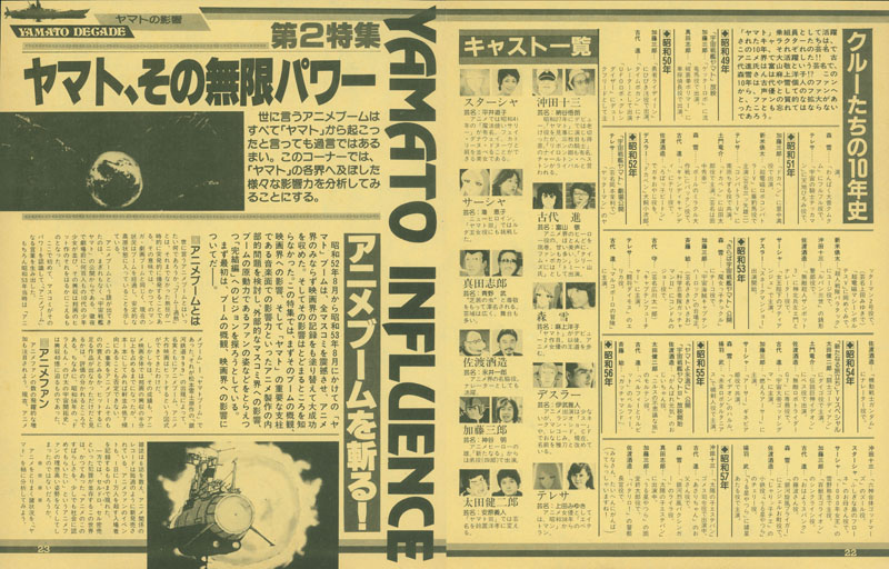 Right side: Voice actors’ other credits.   Left side: “Yamato, the Infinite Power.” (Influence on the anime boom)