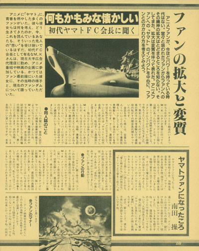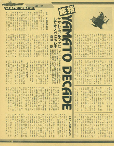This can also be said of the fans. The spirit with which we supported anime for Yamato will probably disappear. The age of anime fans being a subset of manga fans is over. We now have six anime magazines, and the world has come to understand what we mean when we call it anime.