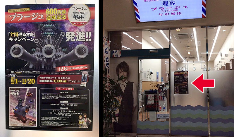 A tie-in campaign with a hair salon? Why not. A chain of Japanese salons named Plage (pronounced with a soft g, not like “plague”) commemorated the opening of its 600th store by starting up an Ark of the Stars ticket lottery. Customers who visited between Sept. 1 and November 20 would be entered to win one of 1,000 tickets to the see the movie in December.