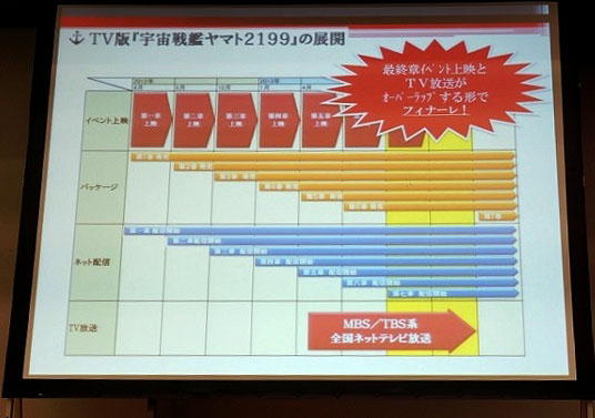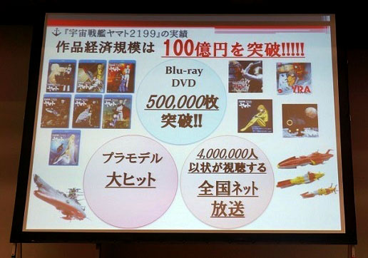 As a result, the TV broadcast of 2199 succeeded, and some stations recorded their highest viewer ratings. It is estimated that four million people watched it. In addition, video and plamodel sales were also a hit with about 500,000 pieces, and Mr. Gunji said this amounted to an economic scale of about 10 billion yen (about $100 million). The effect of the TV broadcast was vivid, with sudden increases in plamodel sales. Moreover, though it was initially thought that the main audience would be traditional Yamato fans, it was revealed that more children were watching that expected.