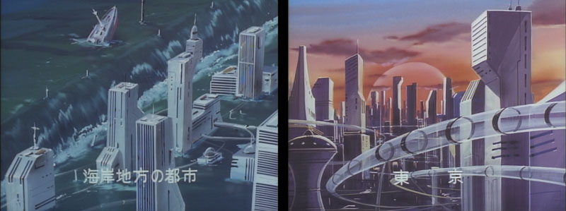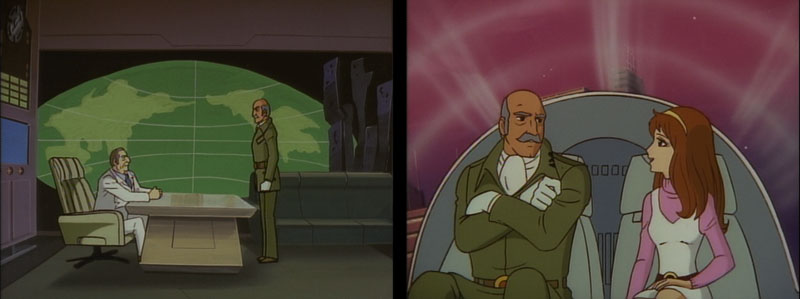 The Commander and his granddaughter Akiko [Wendy Singleton] discuss his new position as they zip through Megalopolis City in a tube-car. She offers to be his assistant, so the Commander decides to make her his liaison with Yamato, a position that will require her to be in regular contact with Aihara [Homer]. She feels a flash of embarrassment, but I’m not sure whether it’s because she just realized this or if it was her plan all along and her grandfather saw right through it. Aihara and Akiko’s burgeoning romance was the focus of Episode 3 and hasn’t been mentioned since.