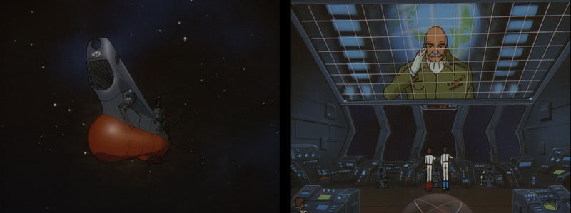 This is the point in the episode where Star Blazers begins. Other than the need for a shorter broadcast length or perhaps the significant on-screen Japanese text during the briefing, there’s no obvious reason for this opening to have been cut.