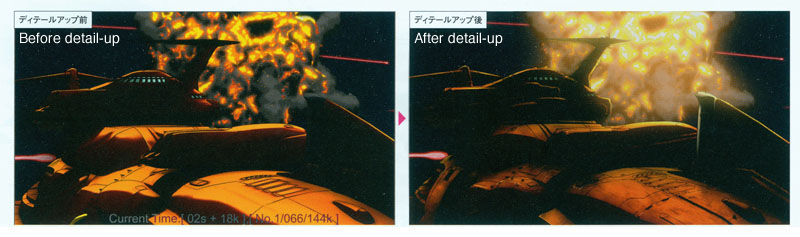 In this film, the powerful effect of battle scenes is also a highlight. Many explosion effects have been developed using AfterBurn, a plugin of 3ds Max. According to Mr. Shimizu, standard effects such as the blast that erupts from Yamato‘s main guns were developed before scene production began, but the people in charge of individual scenes develop effects for the warp and Wave-Motion Gun.